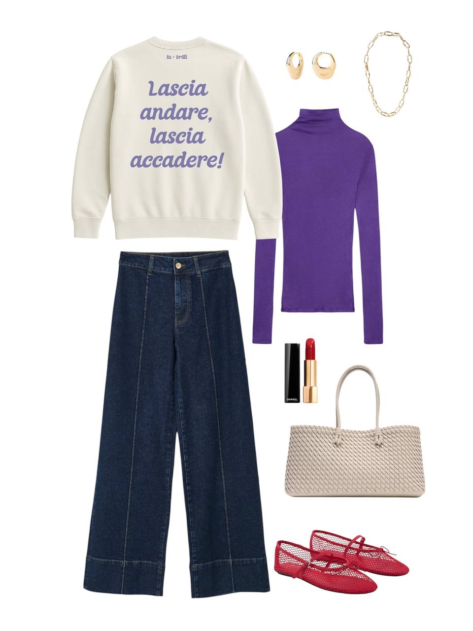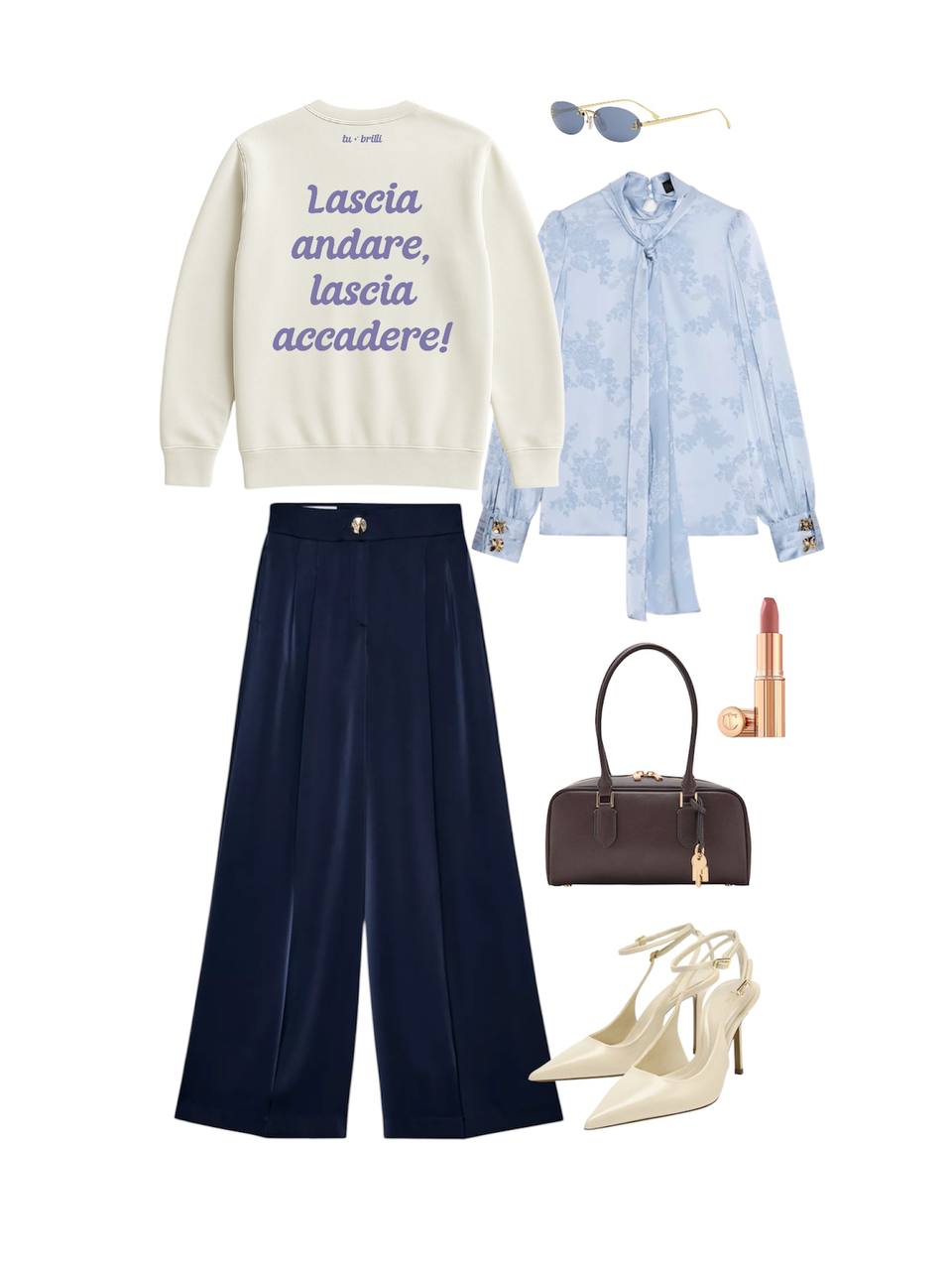 Questa felpa è proprio quel gesto. Morbida, avvolgente, facile da indossare: un piccolo rituale visivo che ti ricorda che brilli già, anche quando le giornate ti mettono alla prova.